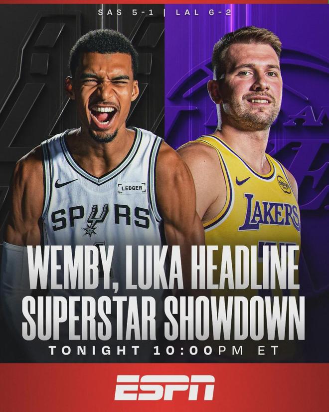 2025年11月06日 湖人险胜马刺 东契奇35+9+13 艾顿22+10 文班19+8+6犯