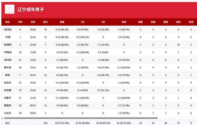 不得不说,辽宁队的强大真是有目共睹的,连上一场6投0中的王化东,此役都靠罚球拿到1分,全队6人得分上双,付豪21分6篮板4助攻,原帅21分2篮板2助攻,高诗岩15分5篮板9助攻,鄢手骐13分4篮板4助攻,李虎翼12分4篮板,韩德君11分,赵继伟7分14助攻。