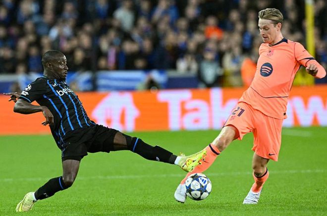 战巴萨贡献2球1助,布鲁日前锋福布斯当选欧冠全场最佳球员